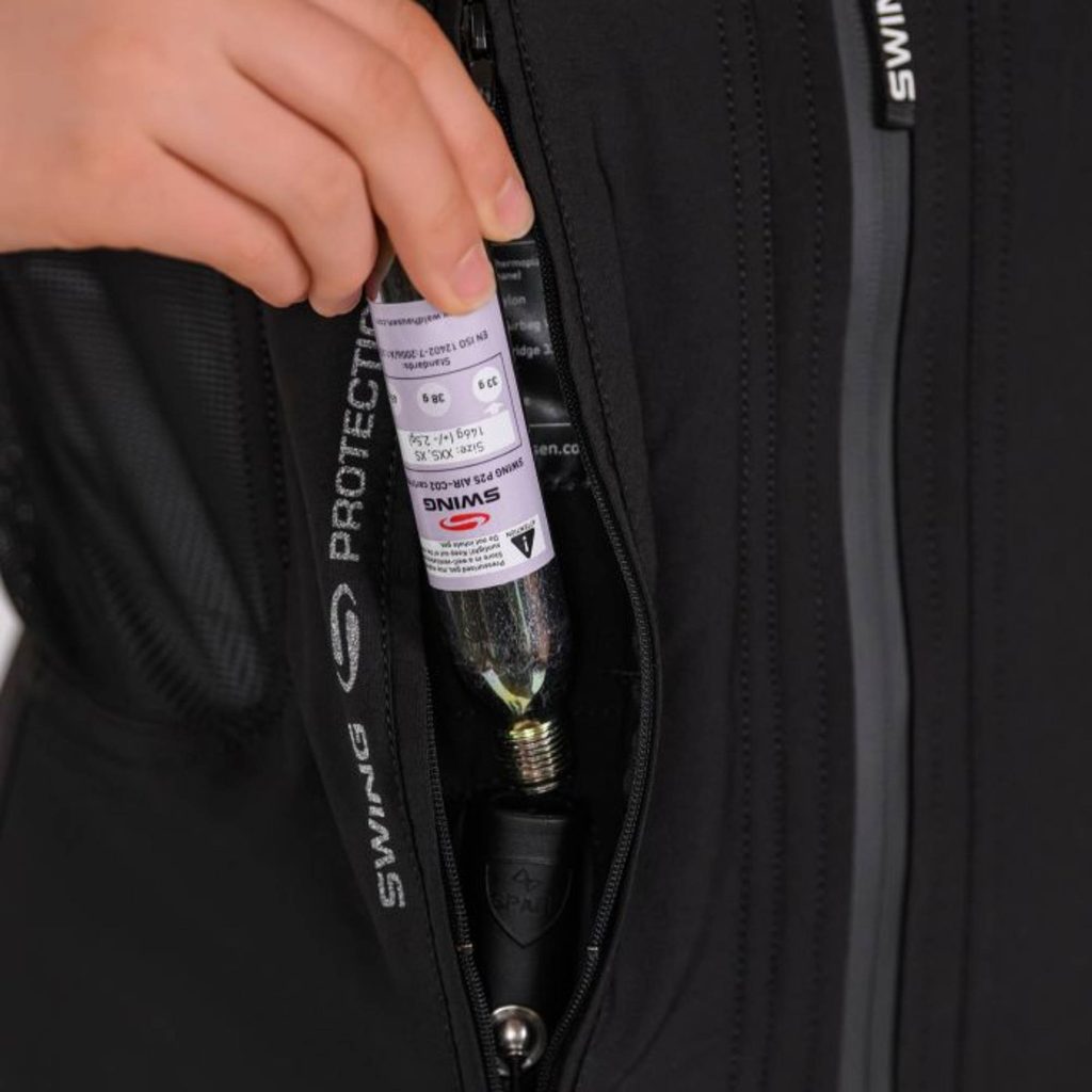 Po aktivaci lze vestu snadno znovu připravit – výměnou originální CO₂ bombičky SWING. Díky praktickému zipu a decentnímu vzhledu dokonale zapadne do každého jezdeckého outfitu.