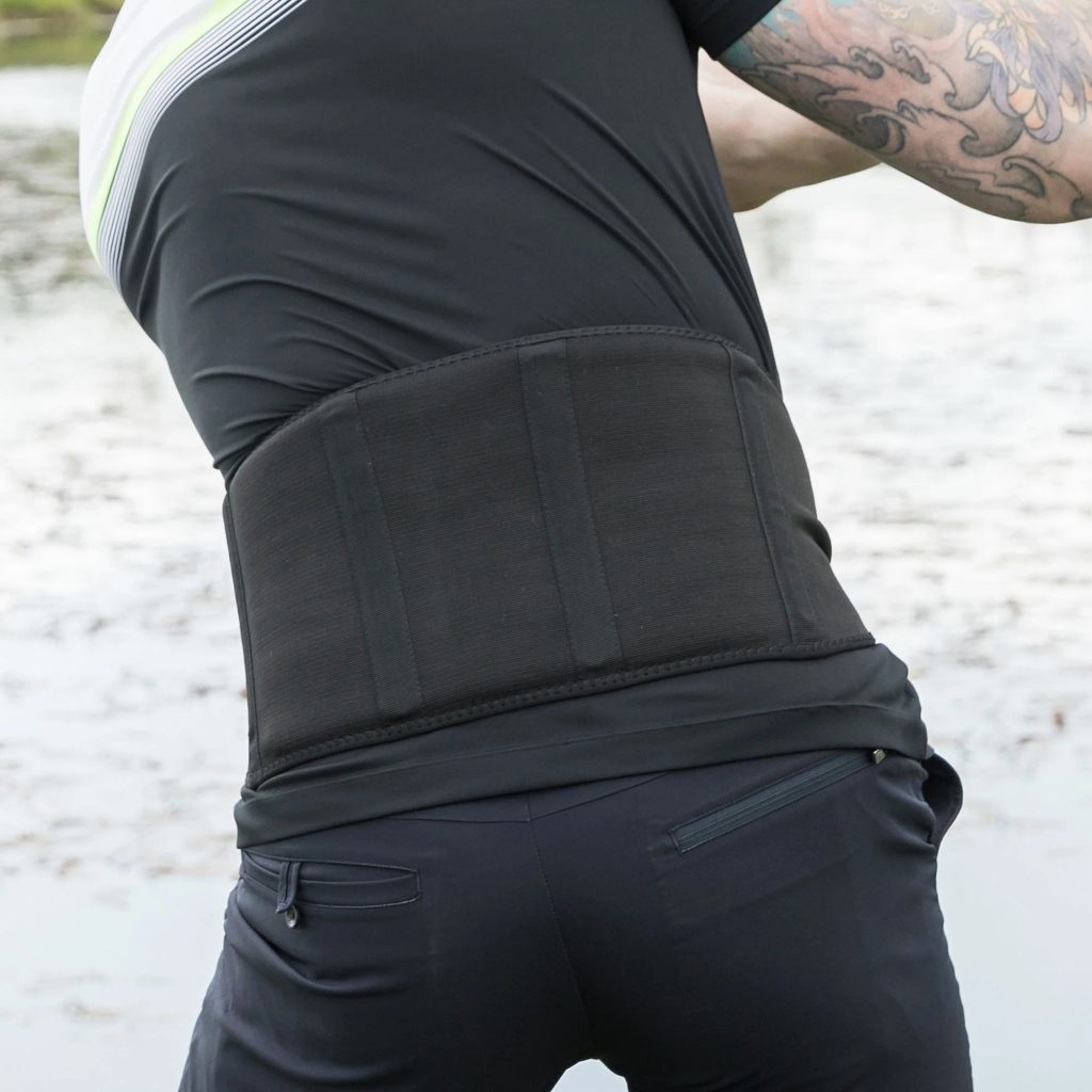 Je velmi pohodlný, když sedíte, ať už v autě, na koni, či v kanceláři, protože je vepředu zúžený. Má vzadu v oblasti beder tenký polštářek, který lze snadno vyndat. Díky němu nevzniká mezera mezi pásem a vašimi zády. Buď tím, že ho tam necháte nebo vyndáte, se vám pás maximálně přizpůsobí.