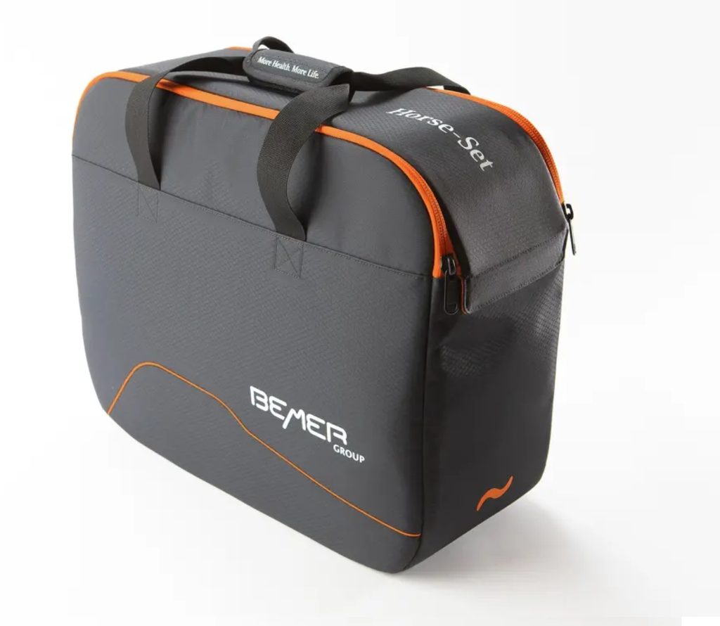 Sada BEMER Horse Premium obsahuje kompletní řadu Horse Line, která se skládá z deky BEMER pro koně, aplikátoru BEMER na krk a chráničů BEMER. Sadu doplňuje ochranná deka a taška na přenášení. Deka na koně, aplikátor na krk a chrániče nohou tvoří perfektní trojici pro každodenní použití ve stáji. Vysoce kvalitní odpocovací deka je nejen funkční, ale také chrání deku na koně. Taška zajišťuje snadnou přepravu celé sady. Všechny produkty BEMER mají integrovanou kombinaci akumulátoru a signálního ovladače, což zaručuje bezdrátové použití.