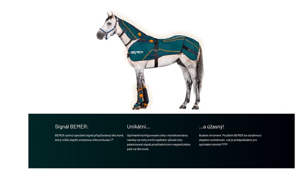 Pokud jde o vašeho koně, nedělejte kompromisy: Jen to nejlepší je dost dobré. Můžete si být jisti, že výrobky BEMER Horse jsou ideálním doplňkem vaší stáje. Jejich inovativní design, snadná manipulace a kvalitní zpracování z nich dělají elegantní a praktické řešení, které si vy (i váš kůň) zamilujete.