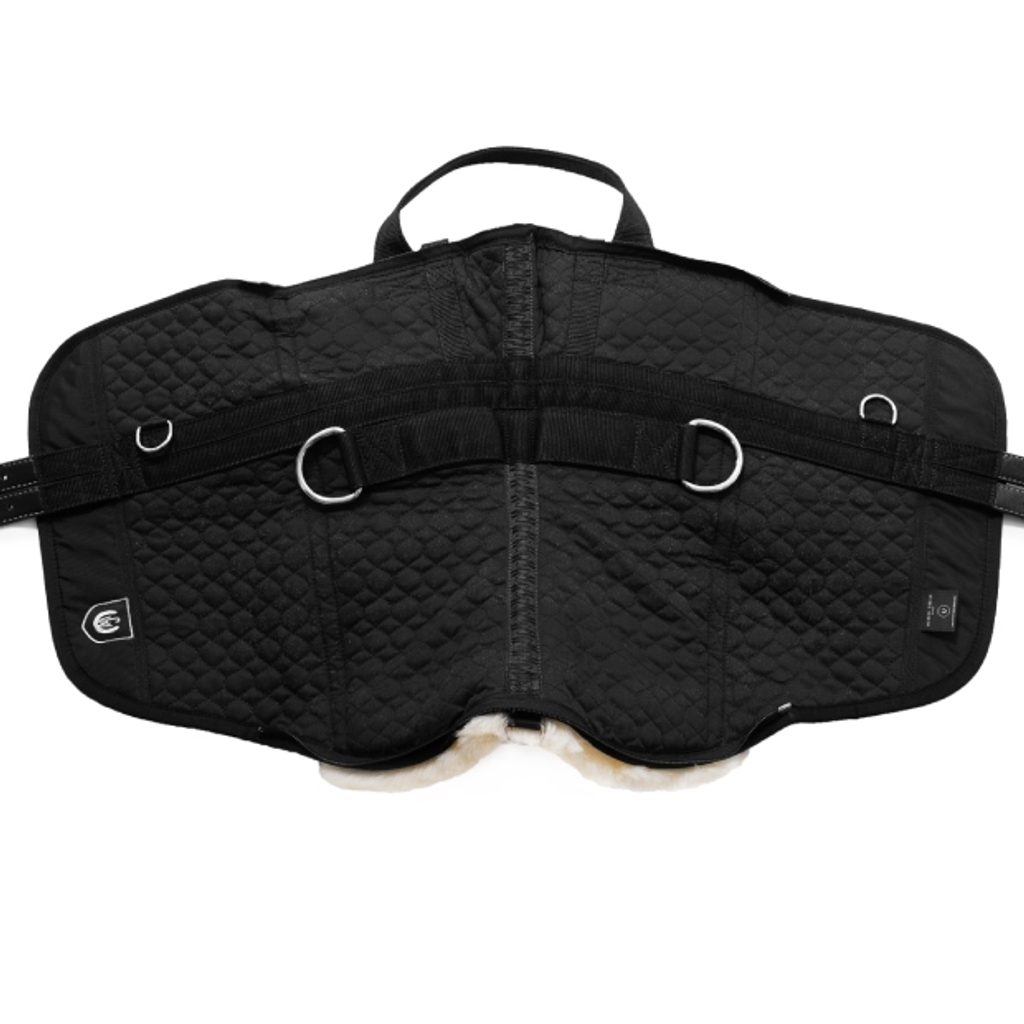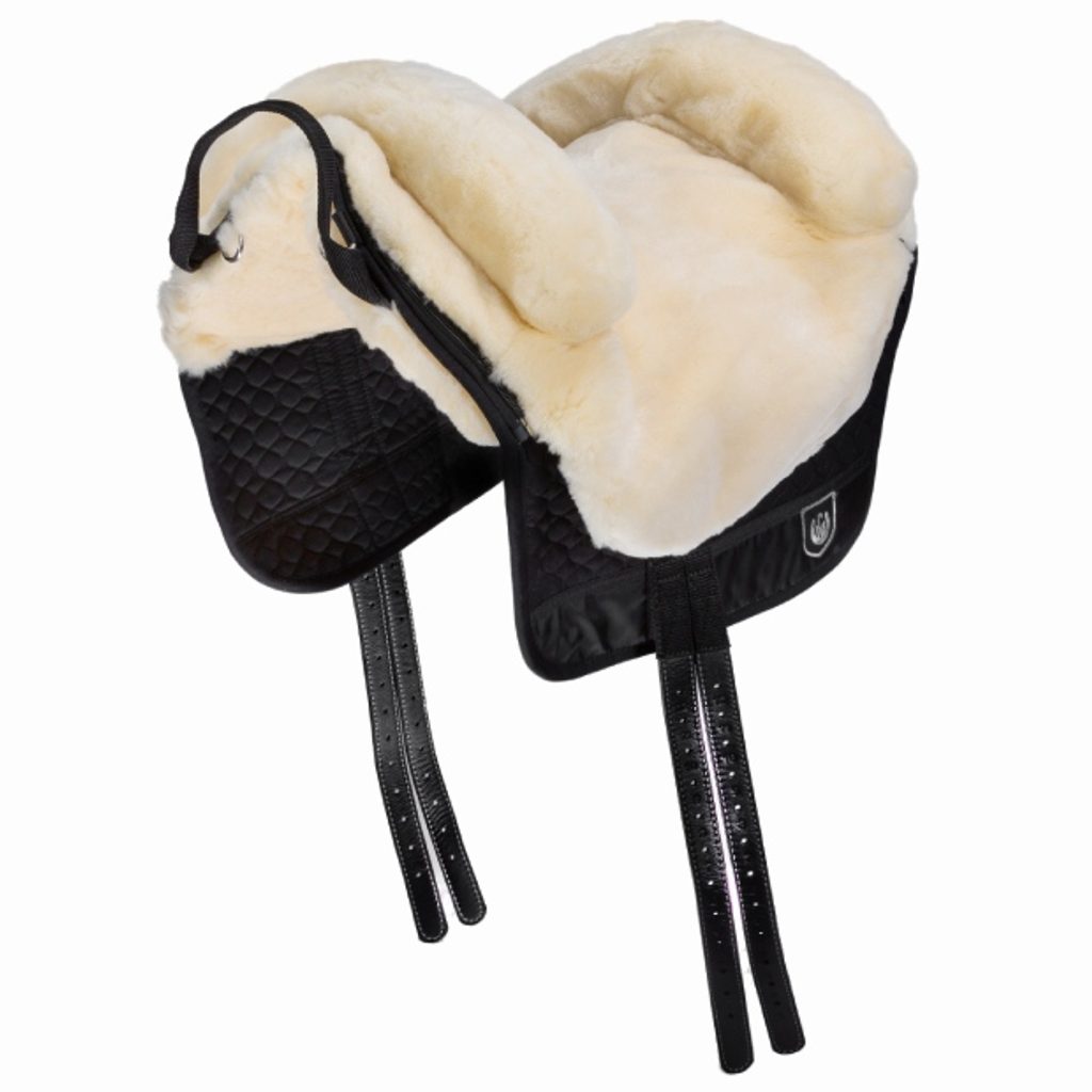 Beránkový pad ve španělském stylu (Fellsattel/Bareback Pad) je perfektní volbou pro jezdce, kteří hledají větší kontakt s koněm, chtějí zapracovat na svém sedu, nebo pro majitele koní se špatnými, bolavými nebo atypickými zády. Iberica je vybavena dvěma polštáři okolo páteře, které vytvářejí páteřní kanál, pomáhají rozkládat váhu a společně s měkkým beránkem chrání záda koně. Přesto je Iberica vysoce kontaktní a umožňuje koni maximální svobodu pohybu. Svrchní pravý beránek nejvyšší kvality od Christ je odepínatelný, a po vyndání výztuhy přední a zadní rozsochy, které jezdci pomáhají najít stabilitu a jistotu, ho lze pohodlně prát v pračce. Ibericu lze použít se třmeny, rozklad váhy však není takový jako v klasickém sedle. Dva dlouhé kožené popruhy na pohodlné připnutí podbřišníku. Velikost: Pony (konf. velikost 38-40), Full (konf. velikost 40+). Barva posedlí: antracit/čer/pří, přírodní/čer/pří, hnědá/hnědá/pří.