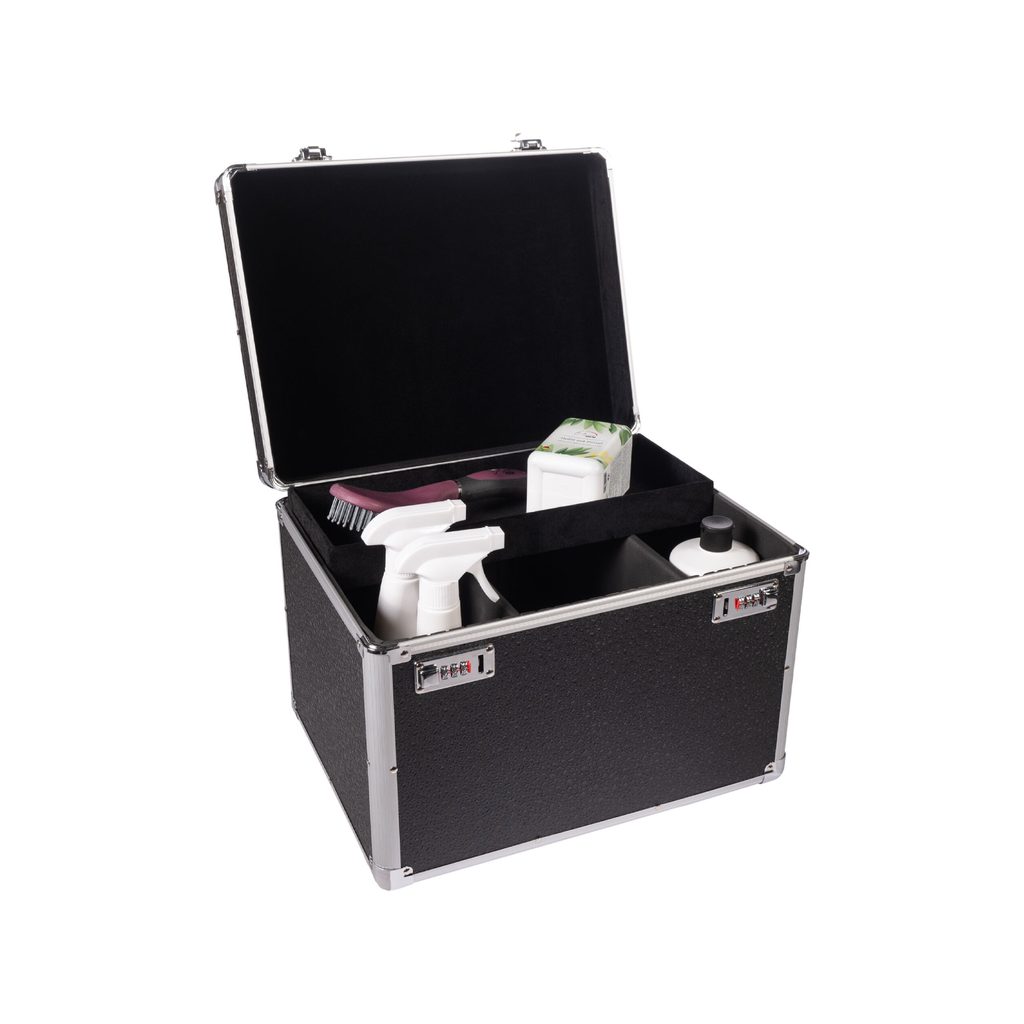 Tento box je nejen elegantní svým perleťovým vzhledem, ale především praktický. Skvěle ochrání vaše čistící potřeby i další jezdecké vybavení a zároveň zajistí, že budete mít vše vždy po ruce a bezpečně uloženo.