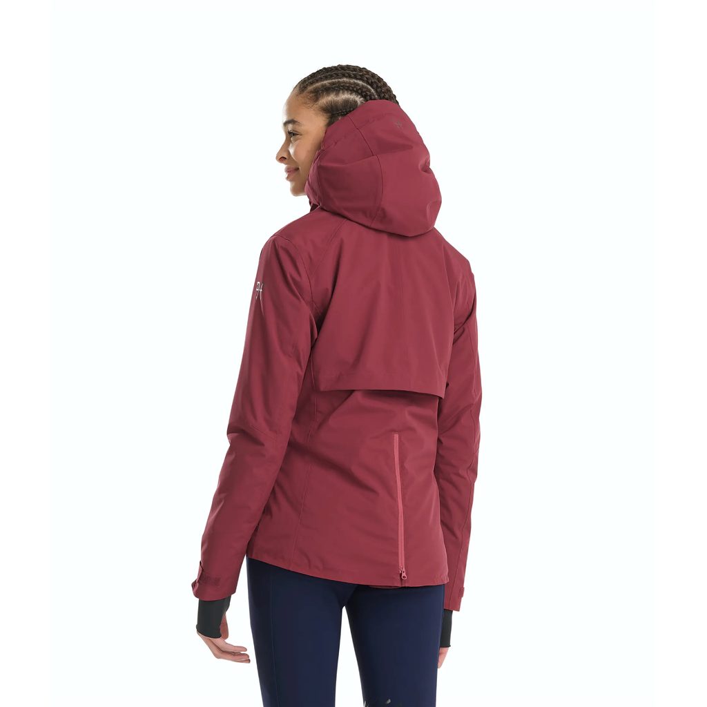 Maximálně funkční dámská jezdecká bunda v ekologickém provedení z recyklovaných vláken. Je elastická, lehká, nabízí optimální svobodu pohybu. Má nepromokavou a zároveň prodyšnou membránu 15 000 mm /15 000 g/m2/24h. Jezdecký rozparek na zip uprostřed zad pro přizpůsobení v sedle. Samozřejmostí je i odvětrávání v podpaží na zip. Přední část bundy je trošku kratší, aby nedošlo k odření sedla. Bunda má předtvarovaný střih přímo pro potřeby jezdců.