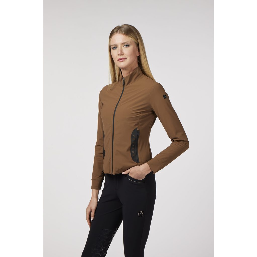 Vestrum Sibari je stylová dámská softshellová bunda, která kombinuje sportovní funkčnost s luxusním designem. Díky vodoodpudivému materiálu vás spolehlivě ochrání při nepříznivém počasí – ideální do stáje, na trénink i do města. Černé logo Vestrum na levém rukávu a decentní aplikace s logem u kapes podtrhují exkluzivní vzhled tohoto kousku.