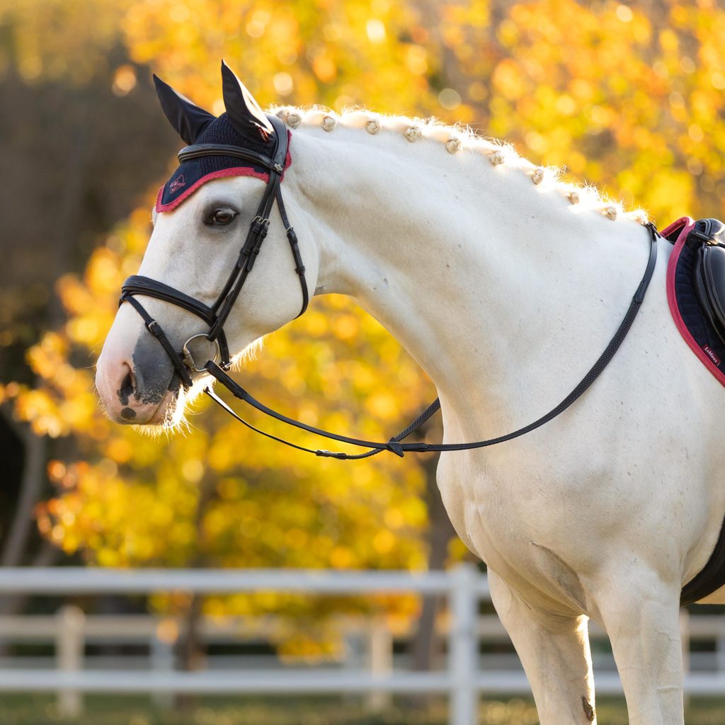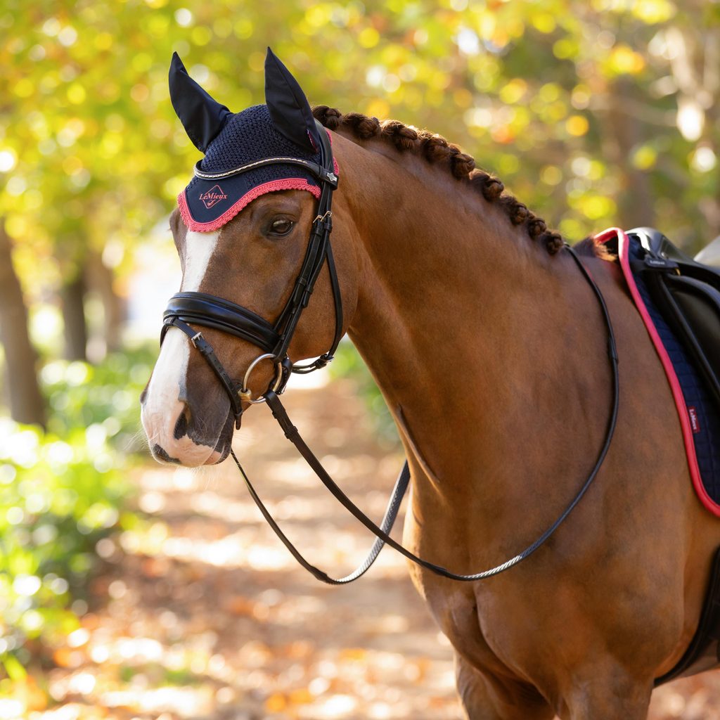 Prémiová čabraka na uši LeMieux v elegantní v tmavě modré barvě s detaily Cranberry