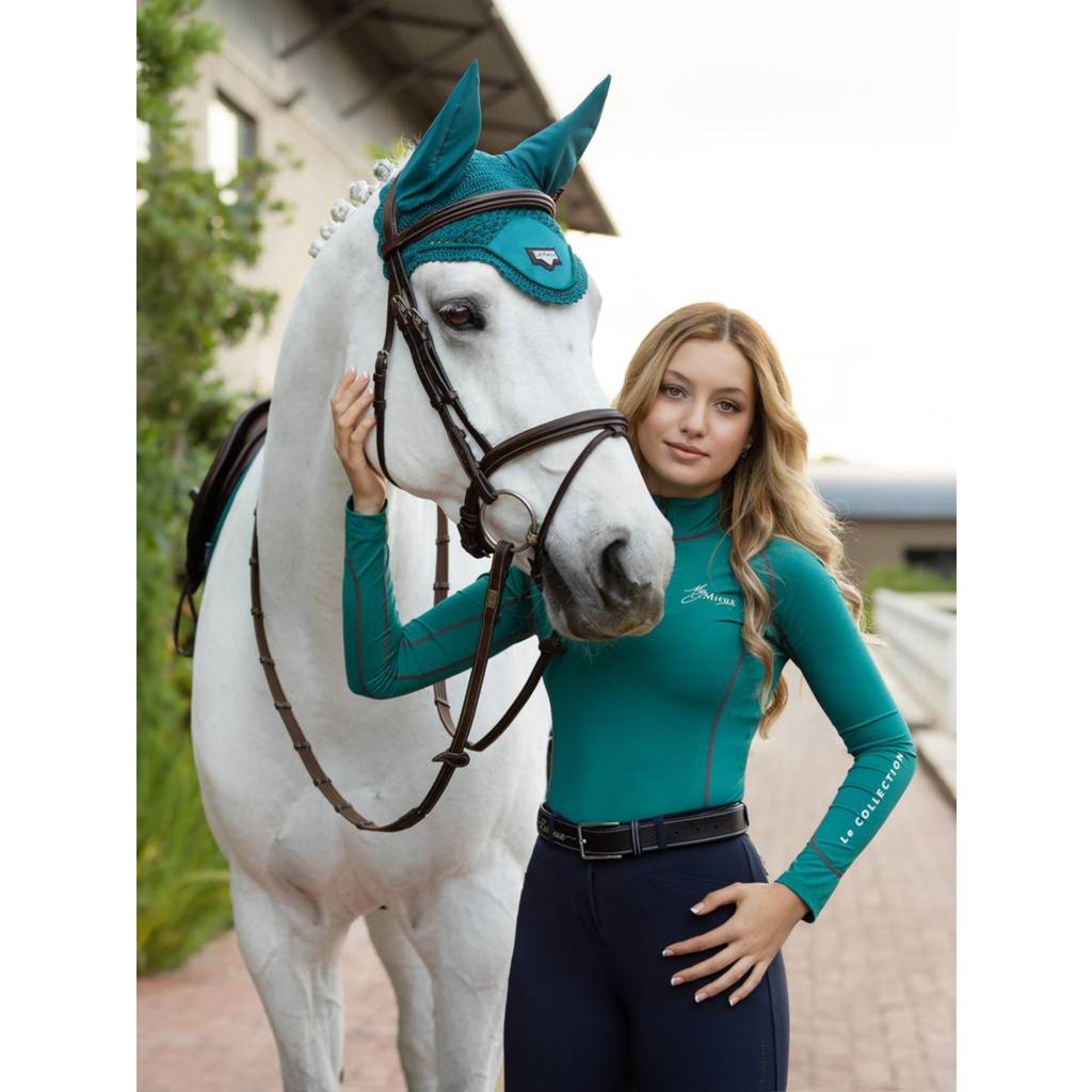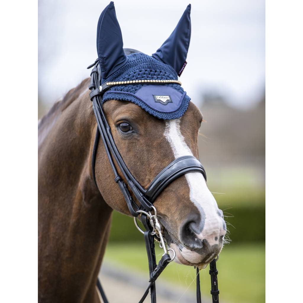 Uši jsou z měkké a elastické lycry pro dokonalé přizpůsobení. Tato čabraka poskytuje koni ochranu před dotěrným hmyzem, umožňuje mu lepší soustředění. Její luxusní vzhled ji předurčuje pro důležitý závodní den a její kvalitní a odolné zpracování umožňuje i každodenní používání.