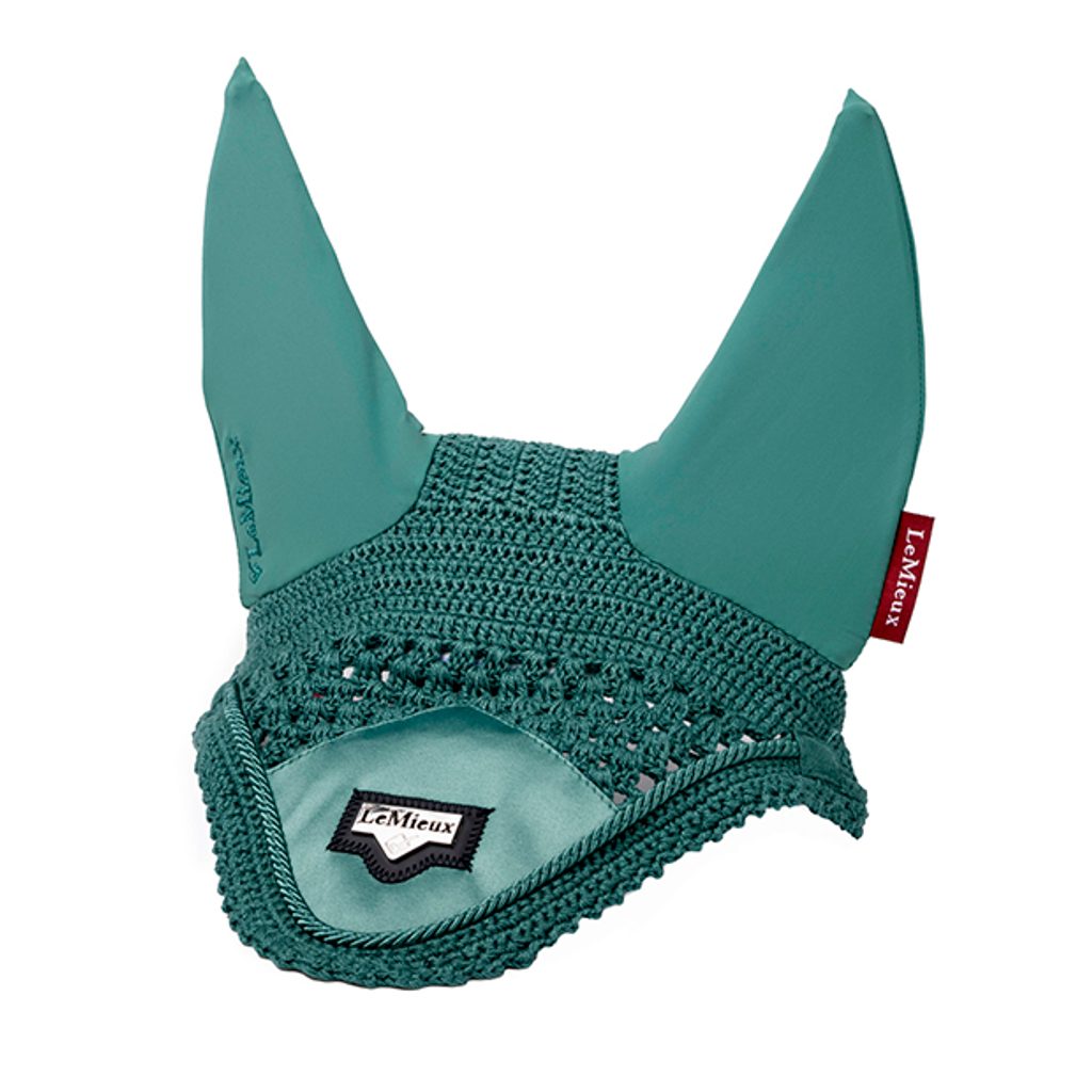 Ručně vyrobená čabraka z háčkovaného úpletu s předním dílem z luxusní saténové látky. Uši jsou z měkké a elastické lycry. Elegantní kovový štítek LeMieux.