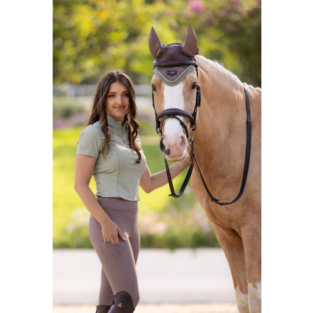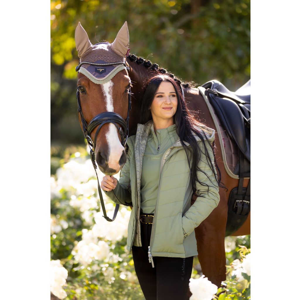 Luxusní ručně háčkované čabraky zdobené saténovou nášivkou s elegantním kovovým odznakem LeMieux. Elastická tkanina na uších se příjemně přizpůsobí. Čabraka chrání koně před dotěrným hmyzem, rušivými vlivy a pomáhá tak k lepšímu soustředění. Navíc, když je takto detailně propracovaná, i krásně vypadá.