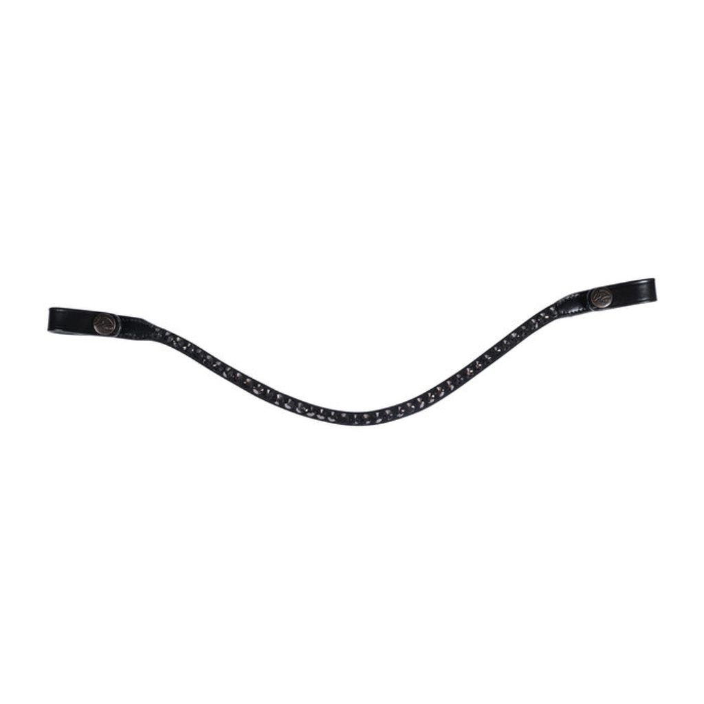 Kožená čelenka zdobená černými velkými kamínky. Perfektně doladí vzhled vaší uzdečky. Čelenka je elegantně tenká, tvarovaná do vlnky.