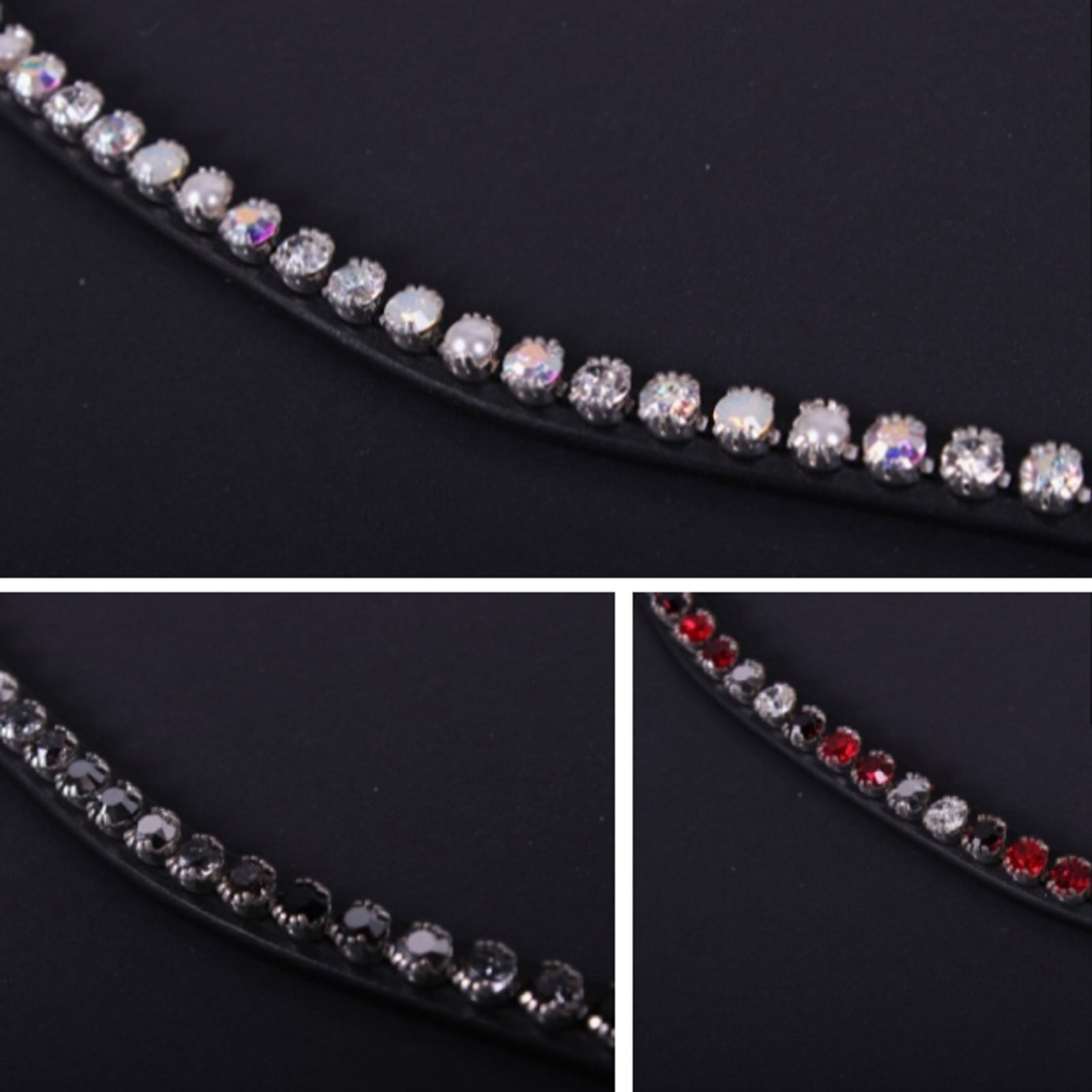 Čelenka s kamínky Swarowski. Díky systému PressTEQ je čelenka velice snadno vyměnitelná. Není potřeba rozebírat celou uzdečku.