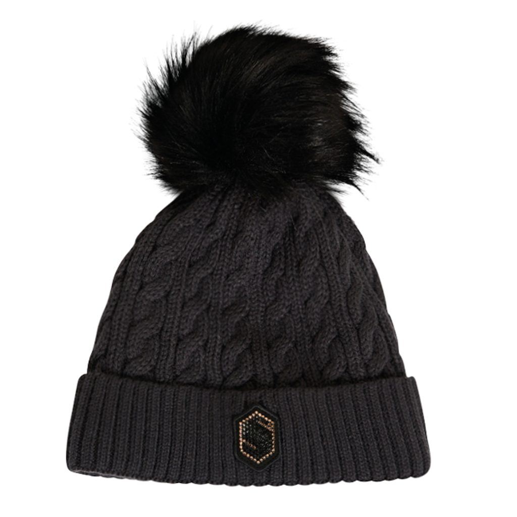 Ohrnutý žebrovaný lem je podšitý příjemným polar fleecem. Bambule je vyrobená se syntetické kožešiny.
