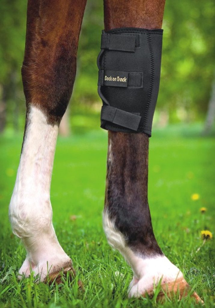 Chránič kolene (karpálního kloubu) vyrobený unikátní technologií Back on Track, která spojuje moderní poznatky s ověřenou čínskou medicínou. V provedení pro pravou nebo levou nohu. Textilní vlákna výrobků jsou speciální technikou napuštěna keramickými částečkami, které při styku s teplem odráží teplo zpět do těla. Toto odražené teplo je vlastně infračervené záření. Je dokázáno, že toto záření znatelně zvyšuje prokrvení v dané oblasti, což snižuje otoky, pomáhá efektivnější regeneraci svalstva a kloubů, napomáhá předcházet zdravotním problémům. Zároveň snižuje dobu nutného zahřátí u tréninku, urychlí zotavení z nemoci, úrazu. Chránič se zapíná pomocí tří pásků na suchý zip. Má robustní neoprenový vnější povrch.