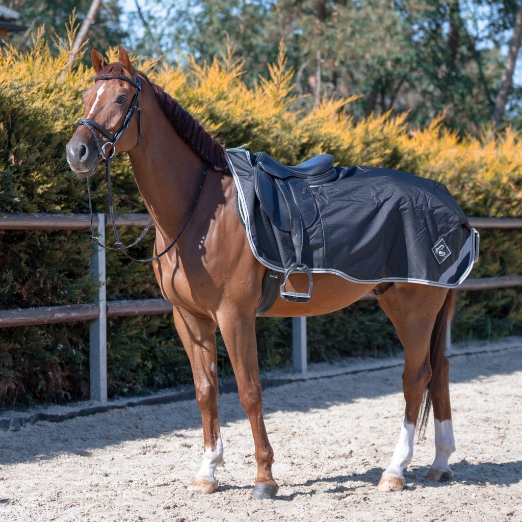 Kvalitní, odolná, nepromokavá a prodyšná bederní deka do každého počasí. Ideální pro jízdu v krátkých zimních dnech, protože kryt na ocas a zadní část mají reflexní proužky. Pomáhá udržet vašeho koně v suchu a teple.