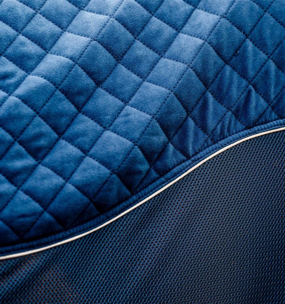 Materiál: horní část deky 50g prošívaný mikrovláknový polar fleece a 100% polyesterový fleece, boky 100% polyesterová síťovina