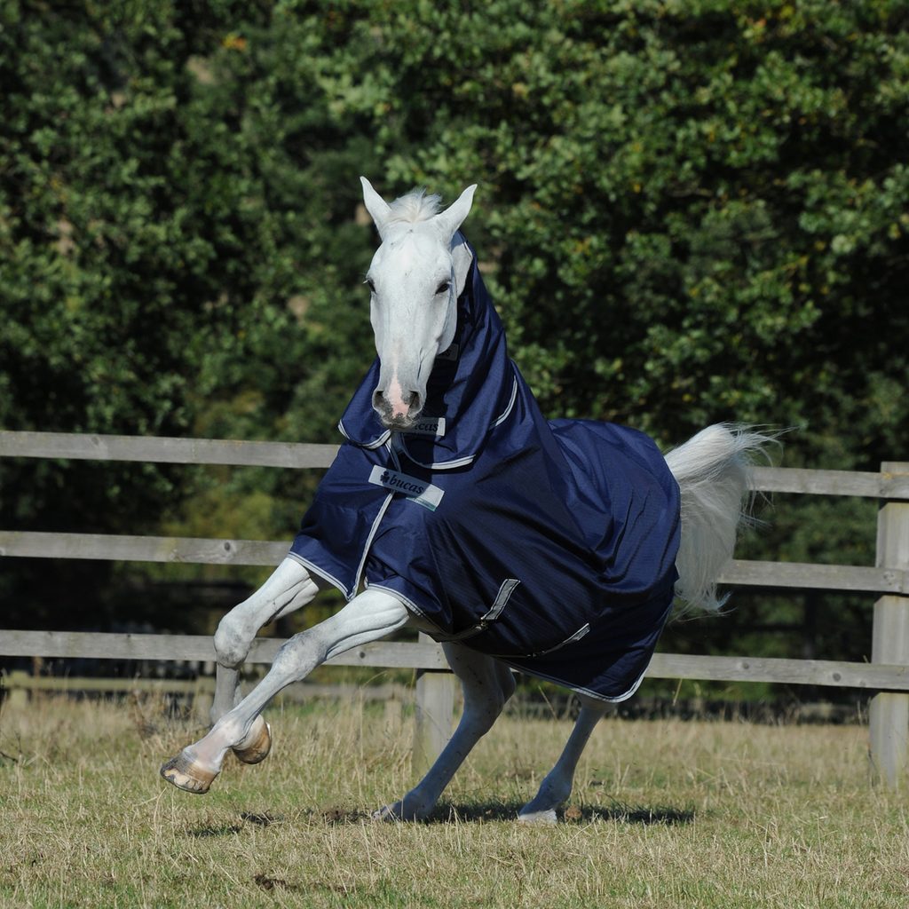 Výběhová lehká deka s krčním dílem od značky Bucas ve velmi dobré kvalitě za skutečně příznivou cenu.