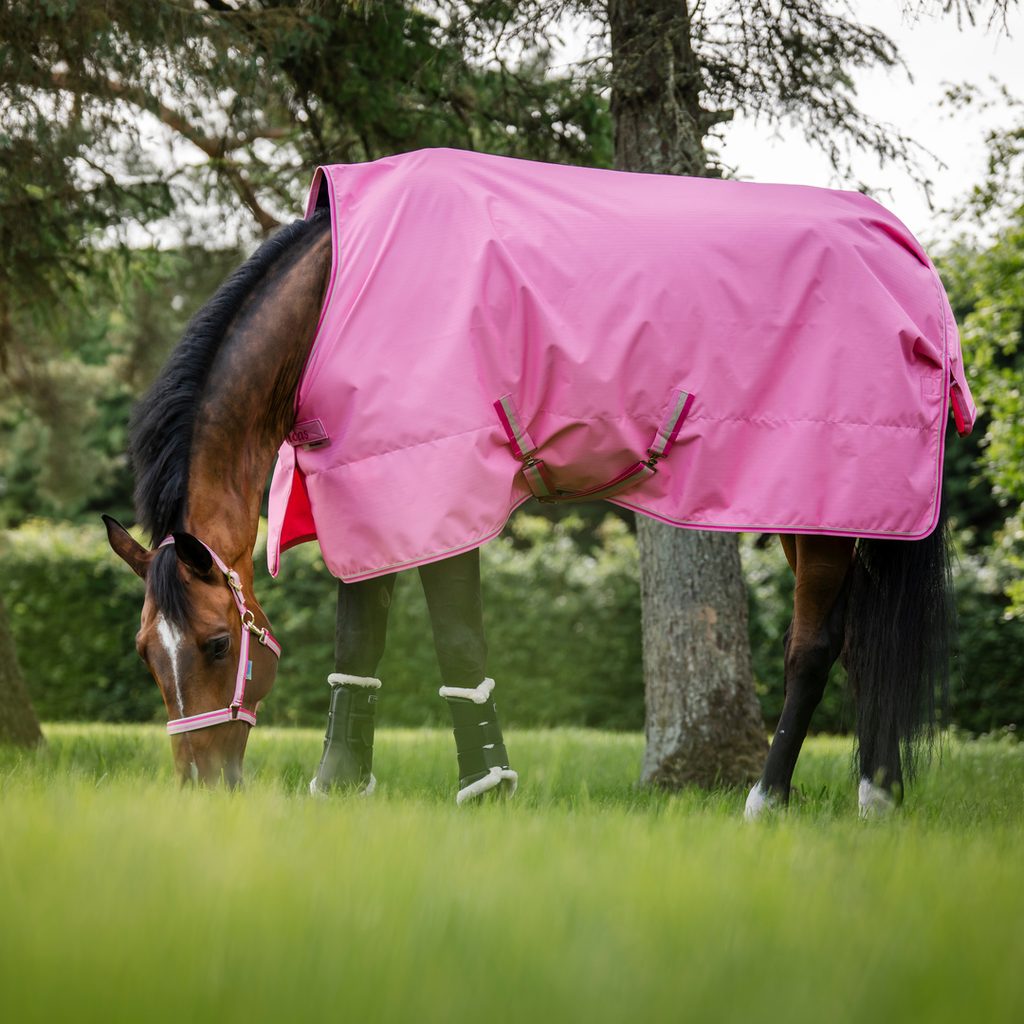 Vyrobena z odolného ripstop materiálu 600D, deka je vodotěsná (>5000 mm) a zároveň prodyšná (>3000 g/24h/m²), takže váš kůň zůstává v suchu a pohodlí i během deštivých dnů. Dermo-care podšívka chrání citlivou pokožku a zajišťuje maximální komfort.