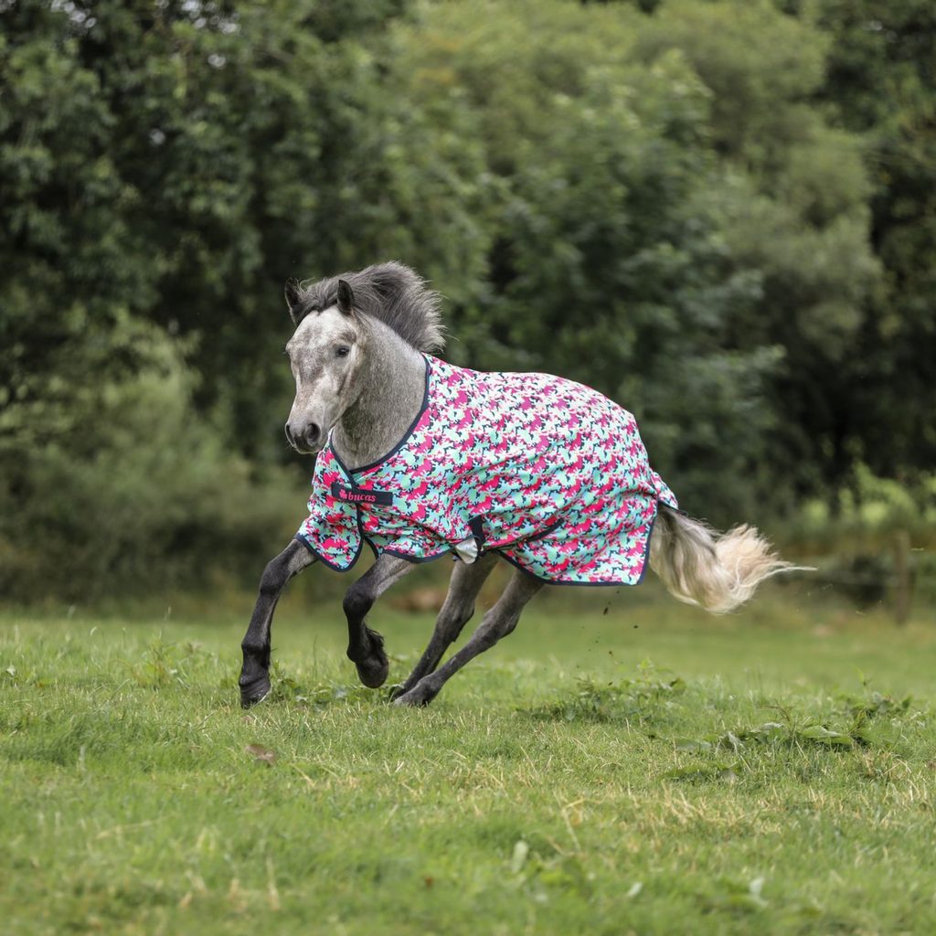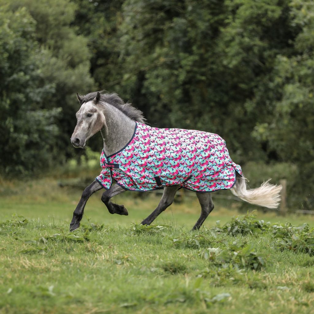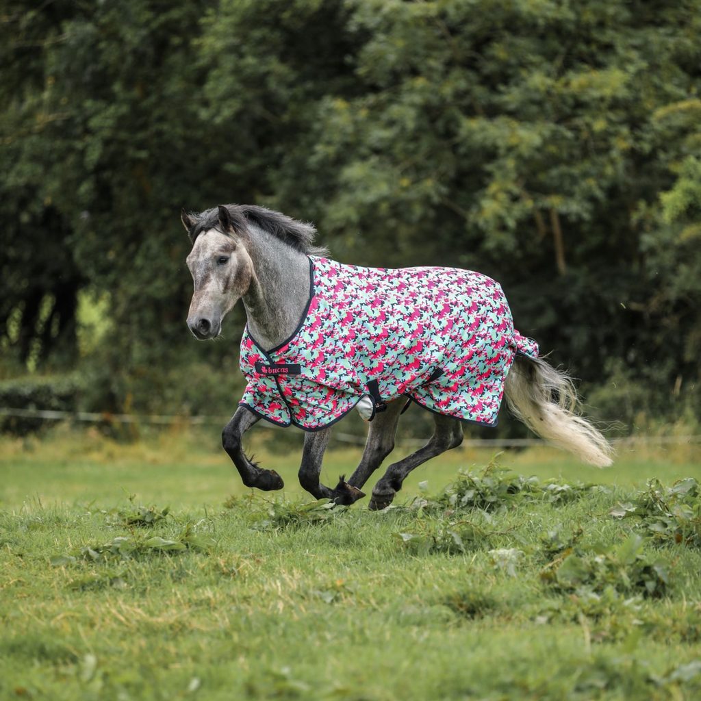 Výborně prodyšný a pevný svrchní materiál polyester Rip-Stop 600 Denier, podšívka z jemného nylonu a osvědčený, velmi dobře padnoucí střih, který dává koni komfort a svobodu v pohybu. Je vybavena zapínáním na T-přezku jištěnou suchým zipem, křížovým zapínáním pod břichem a šňůrkou pod ocas, které ji společně pevně drží na svém místě.