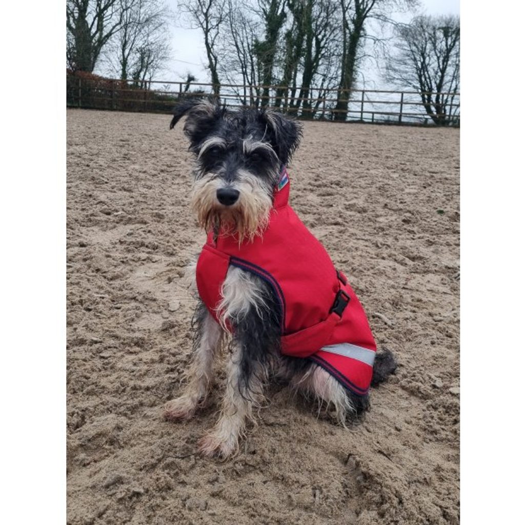 Je ve velmi praktickém střihu s vysokým límcem a spodním dílem ve tvaru T, který vede od krku mezi předníma nohama a zapíná se kolem hrudníku. Tento hrudní popruh je nastavitelný. V přední části je deka vykrojená pro neomezený pohyb předních nohou. Díky tomuto propracovanému střihu a elastickým popruhům na zadní části deka dobře drží, neotáčí se a poskytuje maximální komfort. Deka má hladkou, na dotek hedvábnou podšívku, na které se chlupy i špína drží jen minimálně :-). Límec má otvor pro průchod vodítka.