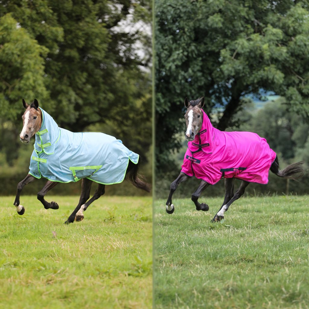 Je vyrobena z odolného materiálu, umožňuje cirkulaci vzduchu a zároveň chrání vašeho koně před otravným hmyzem. Plná ochrana krku a velký ocasní kryt pokrývá oblasti náchylné k útokům much a vnější příčné lemy pomáhají chránit oblast břicha. Je navržena v poutavých kolekčních barvách.