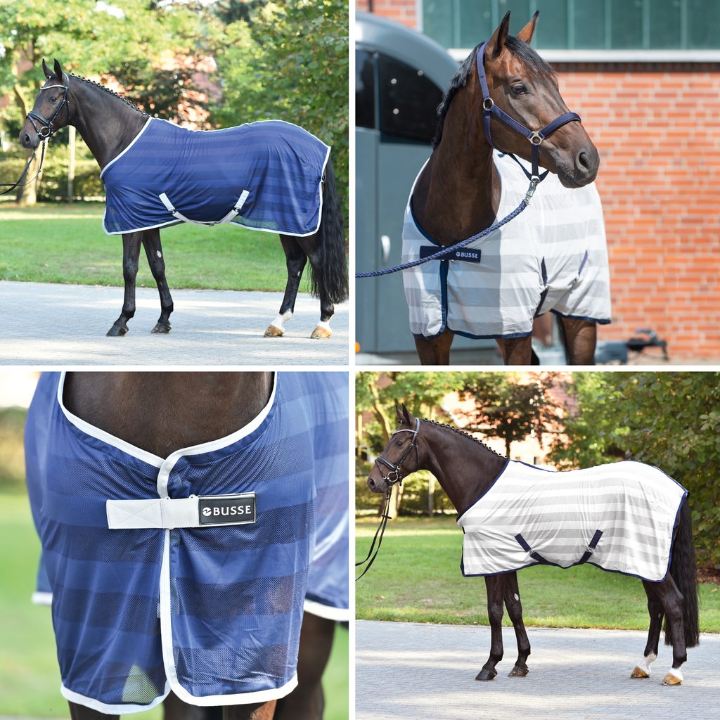Vyrobena je z polyesterové síťoviny v pruhovaném designu. Je tak příjemně prodyšná a chrání koně před dotěrným hmyzem. Zapíná se na hrudi na T přezku, která je překrytá, má nastavitelné křížové zapínání pod břichem a na místě ji ještě jistí podocasní šňůra. Optimálně sedí díky středovému švu na zádech. Materiál je odolný proti nečistotám a vlhkosti.