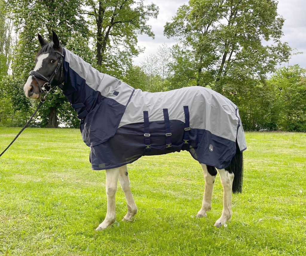 NÁŠ TIP: Střih deky je vhodný pro koně široké v plecích, deka se v této oblasti nedá upravit, proto pokud chcete deku na užšího koně zkuste o číslo menší velikost, než běžně nosí. Model má na sobě velikost 145, což nosí standardně, a celá deka mu sjížděla dozadu.