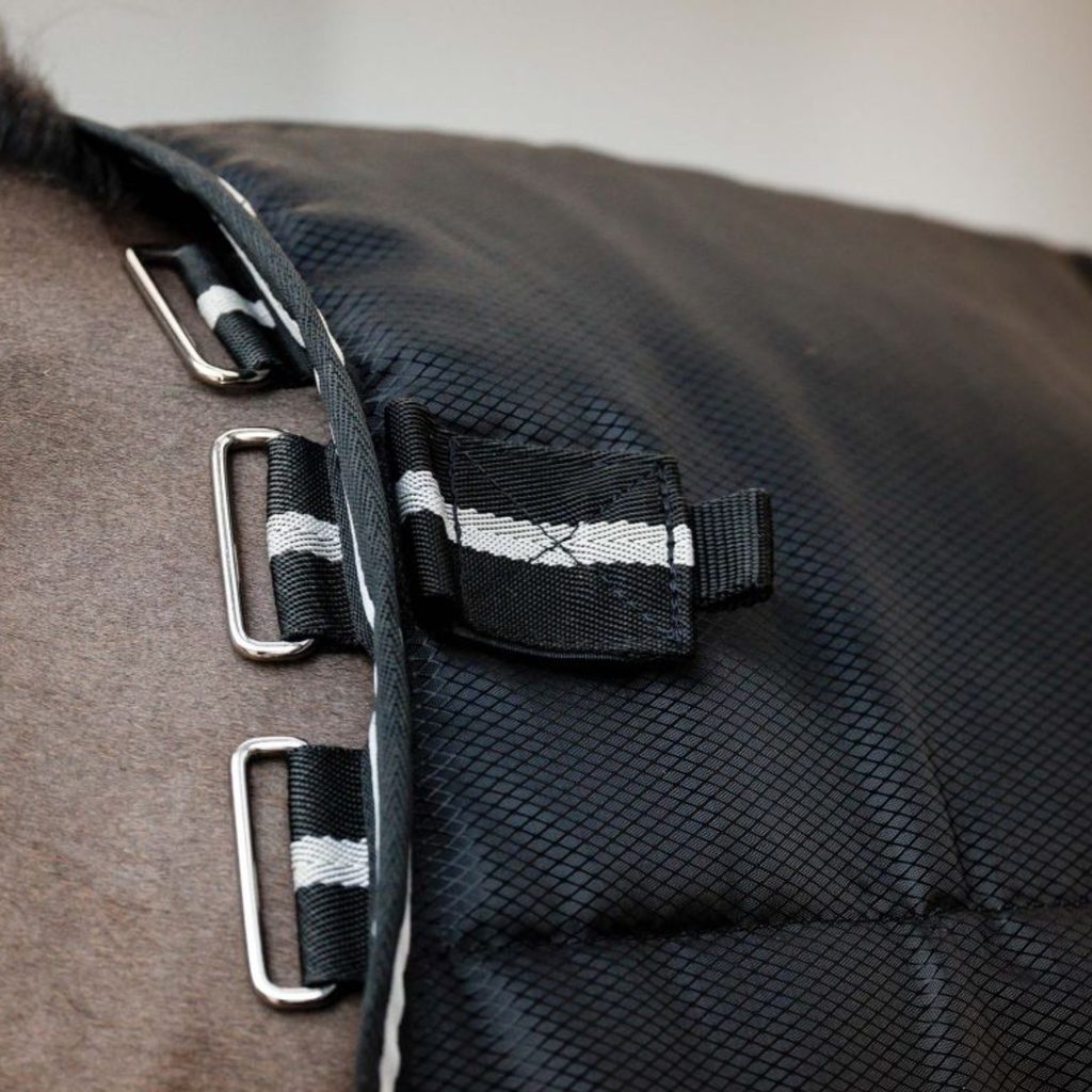 Je vyrobena z vysoce odolného 210D Diamond Polyester Ripstop materiálu, který je speciálně navržen tak, aby odolával roztržení, byl vodoodpudivý, odolný vůči skvrnám a zápachům a zároveň si zachoval elegantní vzhled. Izolační vrstva s 400 g vláknitou výplní (fibrefill) zajišťuje vynikající tepelný komfort a ochranu i v těch nejchladnějších podmínkách, přičemž vnitřní polyesterová podšívka nejen zvyšuje pohodlí, ale také přispívá k zdravému lesku srsti vašeho koně.