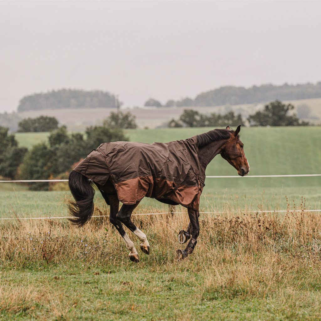 Vysoký střih u krku chrání před větrem a deštěm, zatímco voděodolný, prodyšný materiál zajistí pohodlí při pobytu venku. Fleecová podšívka je měkká a příjemná na dotek, zajišťuje tak koni komfort. Díky preciznímu střihu a nastavitelnému zapínání deka perfektně sedí a zůstává na místě i při pohybu.