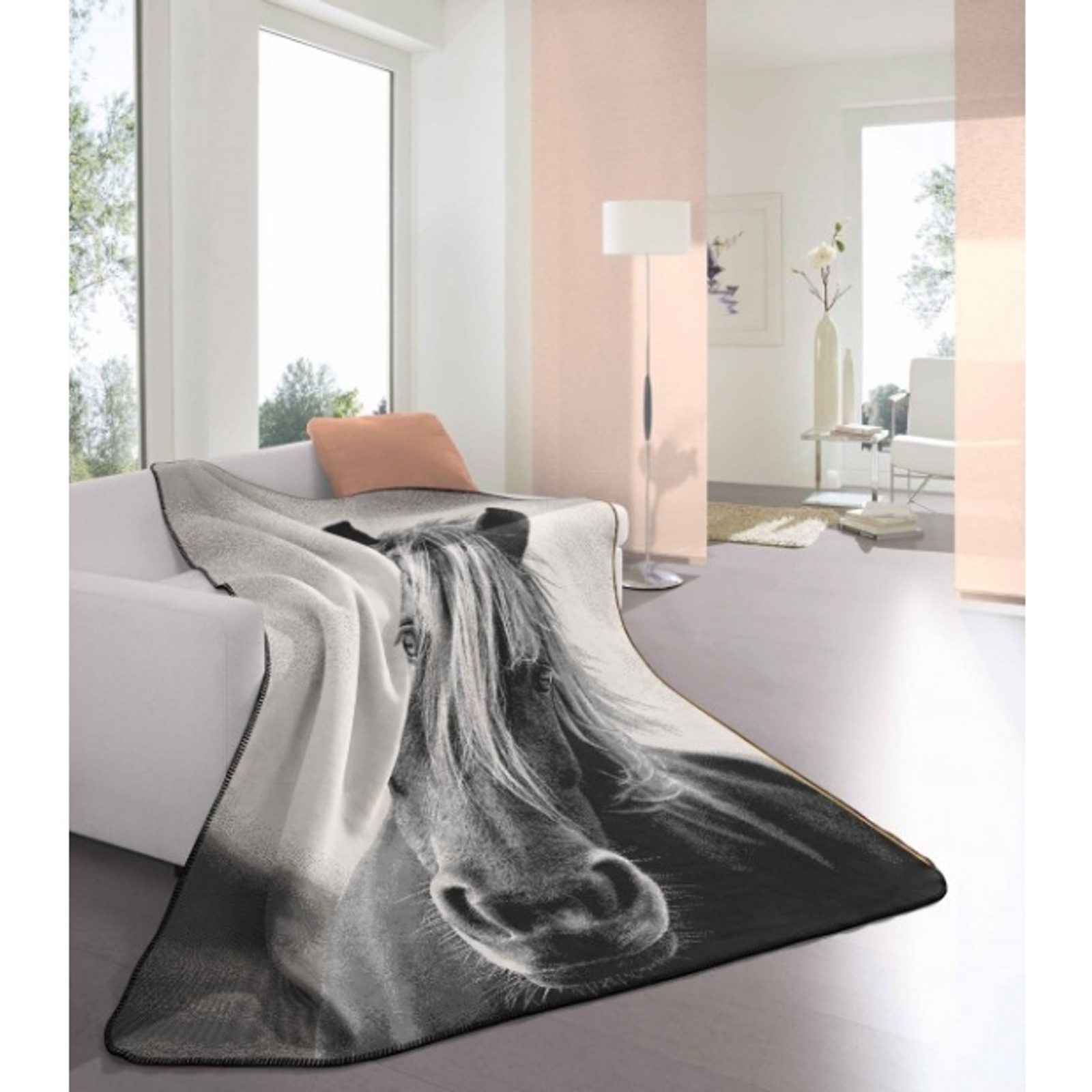 Luxusní fleecová deka z pevného materiálu s motivem koně. Možno prát v pračce na 30°C na jemný cyklus. Rozměr: 150 x 200 cm. Příjemně měkký povrch a hustý vlas jsou příslibem pohody. Překrásný motiv koně v antracitové barvě. Deka je po celém obvodu lemována. Vyrobeno v Německu. Doporučený věk: od 4 let. Certifikace OEKO-TEX.