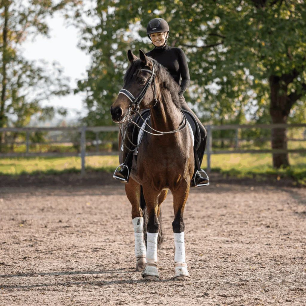 Varianta pákového uždění s nízkým anatomickým klenutím, které netlačí na patro. Stálý, rovnoměrný tlak je vyvíjen po celé šířce jazyka. Vzhledem k delším spodním ramenům o délce 7 cm nastupuje efekt o něco později. Dobrá volba pro koně, kteří mají problémy s přilnutím. Udítko je z chuťově aktivního materiálu Sensogan, ramena ze stříbrného Argentanu-vhodné k uzdám se stříbrnými přezkami.