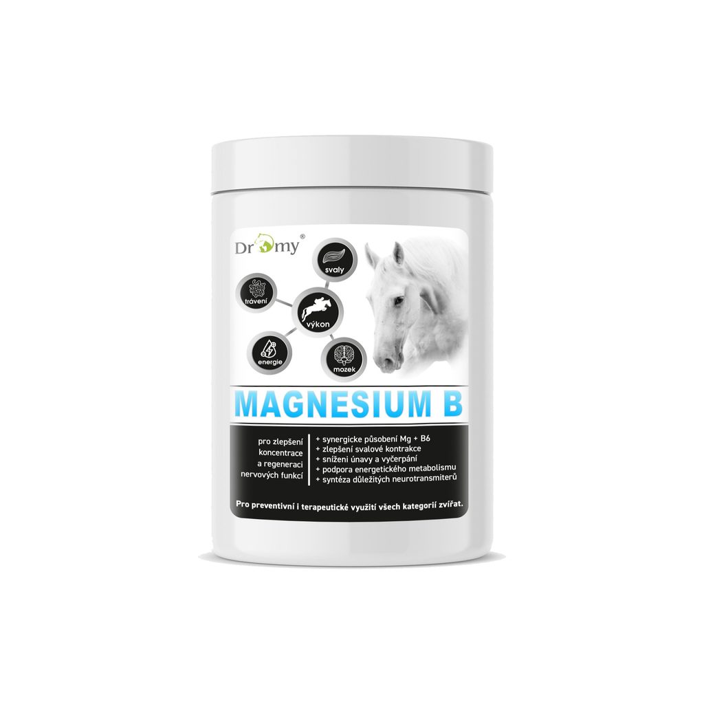 Synergické působení hořčíku (Mg) a vitaminu B6 je pro koně klíčové. Vitamin B6 zvyšuje absorpci hořčíku v buňkách. Bez dostatečného množství vitaminu B6 je hořčík méně účinně využíván.