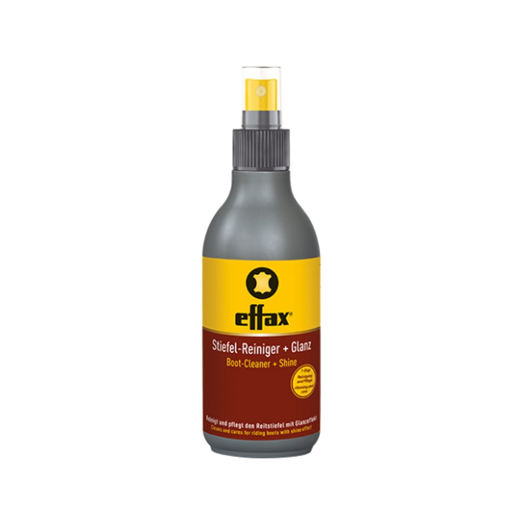 Inovativní složení nevyžaduje přidání vody a odstraňuje z hladkých kožených jezdeckých bot odolné nečistoty jako je koňský pot a písek z jízdárny. Effax Bootcleaner + Shine byl vyvinut pro speciální péči o jezdecké boty a švy. Dodává botám lesk a pomáhá odpuzovat nečistoty.