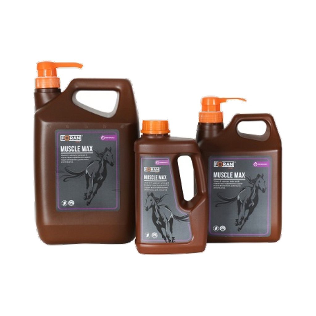 Muscle Max je chutný výživový doplněk v tekuté formě obsahující L-lysin, vitamín E, selen a vitamíny skupiny B, které napomáhají tvorbě svalů, zejména pak u mladých či slabých koní. L-lysin je esenciální aminokyselina potřebná k vývoji kostí a svalů. Vitamín E a selen jsou účinné antioxidanty, které zajišťují celistvost buněčných tkání. Vitamíny skupiny B jsou potřebné k optimálnímu využití bílkovin a energie v těle koně.