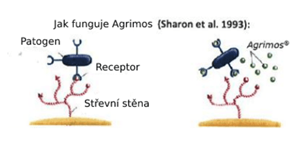 Prebiotika (Agrimos®): zabraňují uchycení patogenních bakterií na střevní stěnu. Dělají je méně nebezpečnými. Jsou substrátem pro dobré bakterie, které se snadno množí.