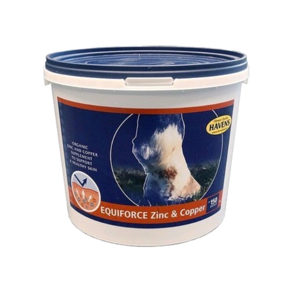 EquiForce Zinc & Copper je koncentrovaný doplněk přírodního zinku a mědi, s přidaným vitamínem E a přírodním selenem. Podporuje ochranu a zdraví kůže a je vhodný, je-li přirozená kožní bariéra oslabena a může dojít k jejímu narušení vnějšími vlivy (na blátivých pastvinách, během deštivých období, nebo během léta, kdy je kůň vystaven suchu, horku a obtěžování hmyzem).