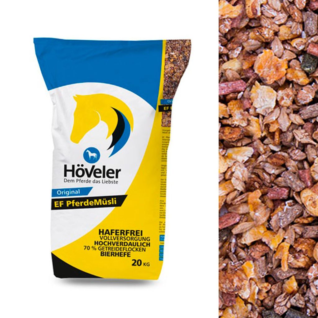 Díky podávání EF Pferde Müsli může být do značné míry sníženo riziko koliky a nadýmání (v důsledku přílišného nahromadění sacharidů v tlustém střevě).