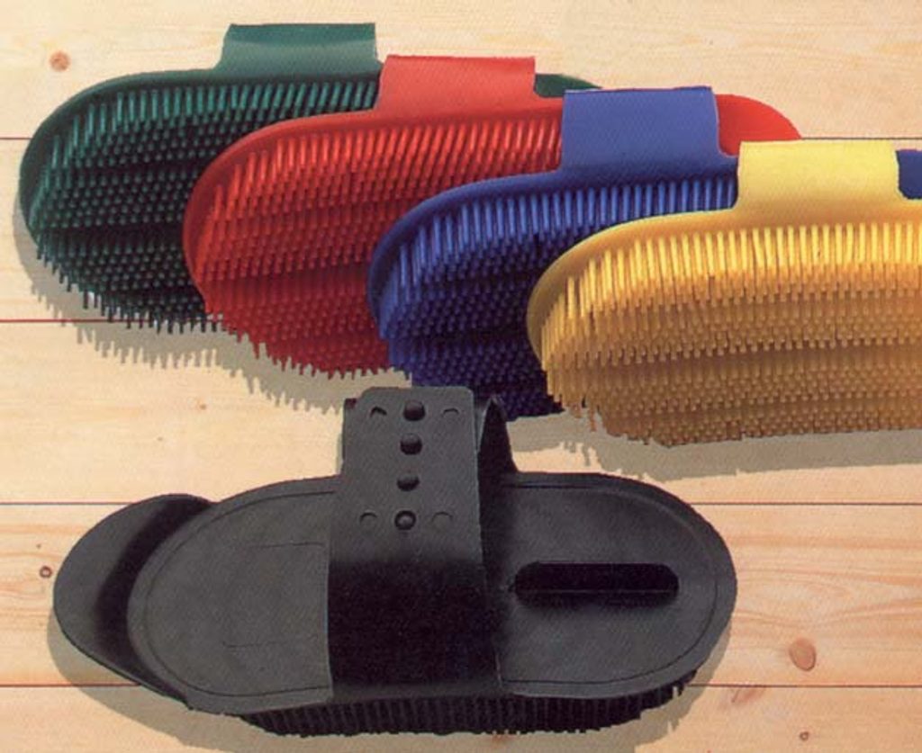 Plastové masážní hřbílko s nastavitelnou velikostí ve hřbetu ruky. Vhodné na rozkartáčování zaschlého potu i jako dobrá pomůcka při jarním línání. Barvy černá, červená, zelená, lila, růžová a modrá.