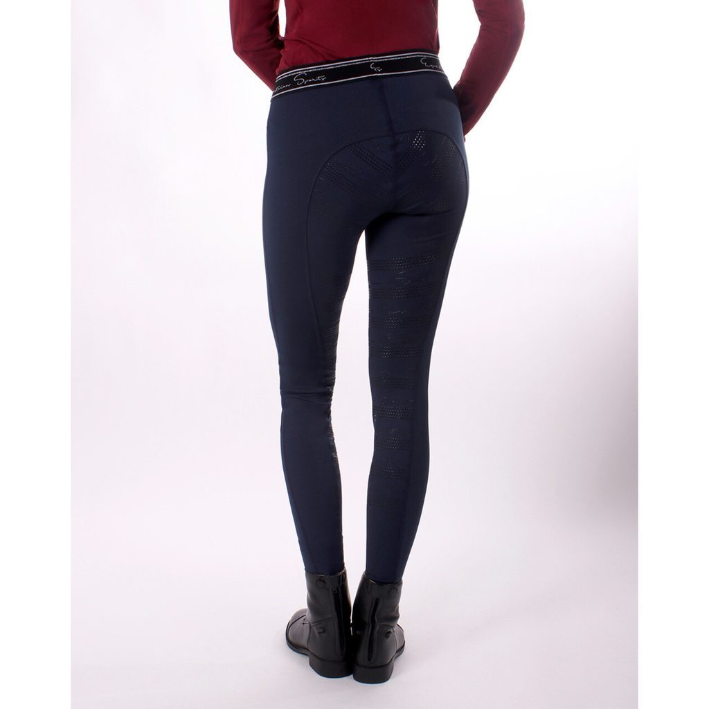 Díky celogripovému sedu poskytují výbornou stabilitu a jistotu při jízdě. Praktická kapsa na pravém stehně umožňuje snadný přístup k telefonu i během tréninku. Čtyřsměrně strečový materiál se přizpůsobí vašemu tělu a zajistí pohodlí po celý den – ať už jste ve stáji, nebo na koni. Gumový pas se zdobením dodává modelu ženský a sportovní nádech.