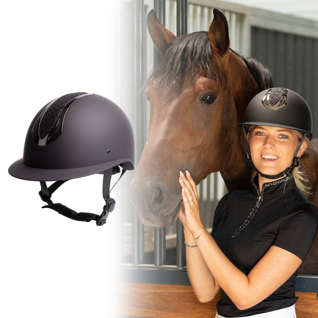 Stylová a bezpečná jezdecká helma s matným povrchem a jemným třpytivým efektem Matt Sparkle spojuje moderní design s maximální ochranou. Splňuje nejnovější bezpečnostní normu EN1384:2023, která garantuje vysokou úroveň bezpečí při jízdě na koni.