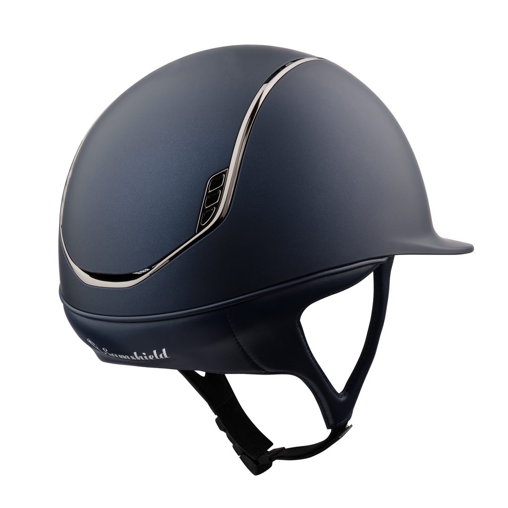 Jezdecká helma Samshield Shadowmatt 2.0, s decentním zdobením kamínky Swarovski, opět ve velmi propracovaném provedení, který je výsledkem čtyřletého výzkumu. Tento tvar helmy bude perfektně sedět lidem s typově kulatější hlavou. Helma lépe dosedne na vršek hlavy a příjemně ji obepne.