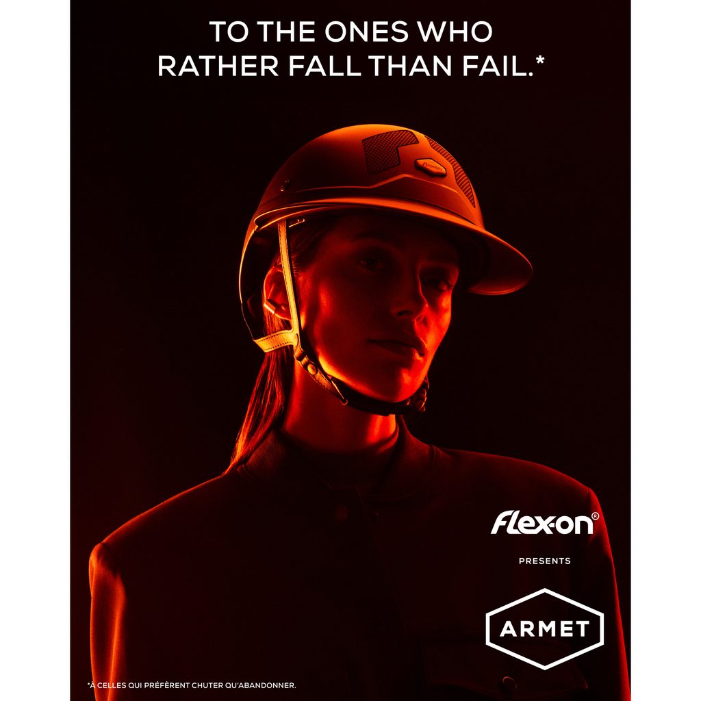 Jezdecká helma ARMET od značky Flex-on je ideální volbou pro ty, kdo hledají nejen spolehlivou ochranu, ale také maximální pohodlí a jedinečný styl. Díky moderním technologiím a promyšlenému designu vám poskytne jistotu a komfort při každé jízdě. Je velmi lehká, odolná a chrání proti nárazu díky absorbování vzniklé energie při úderu či pádu. Je vybavena obousměrným ventilačním systémem, který umožňuje optimální proudění vzduchu zepředu dozadu díky dvěma mřížkám a síti ventilačních kanálků. Kšilt je vyrobený z technického materiálu Zytel, který se při nárazu deformuje, aniž by se rozbil.