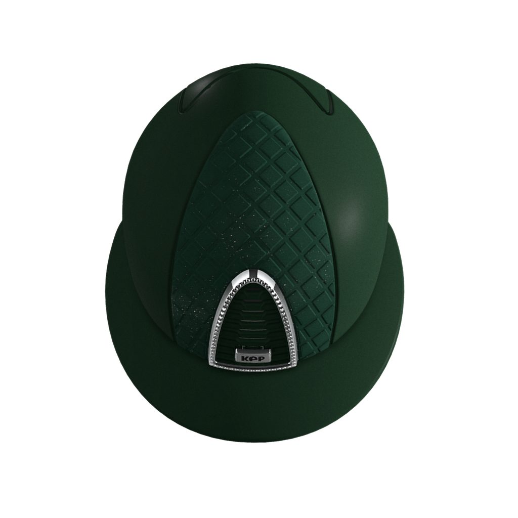 Jezdecká ochranná helma KEP Cromo 2.0 Textile Green Jaguar Milano Velvet Polo SWAROVSKI