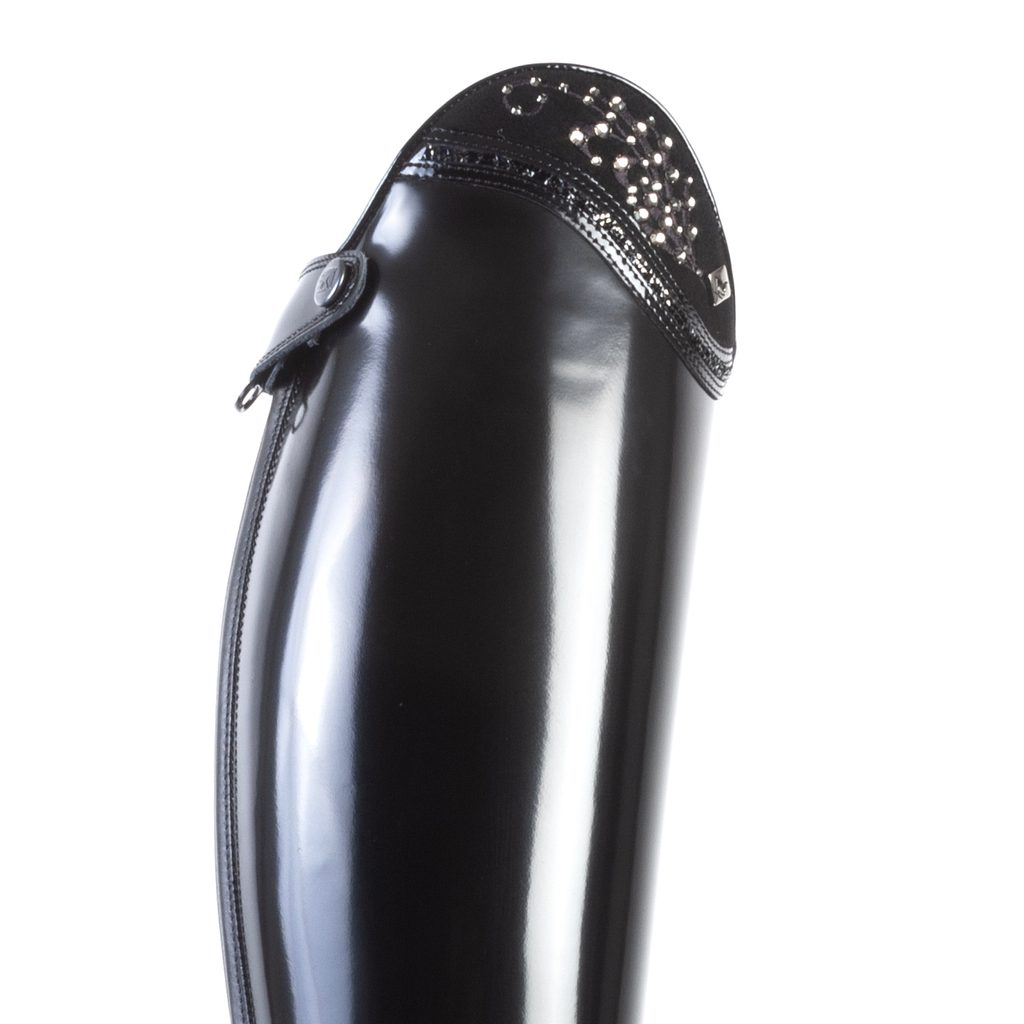 Jsou velmi poutavě zdobeny zajímavým třpytivým topem z krystalů, semišovým detailem na nártu a pololeskem na špičce a vnější části holeně. Vnitřní holeň je vyztužená.