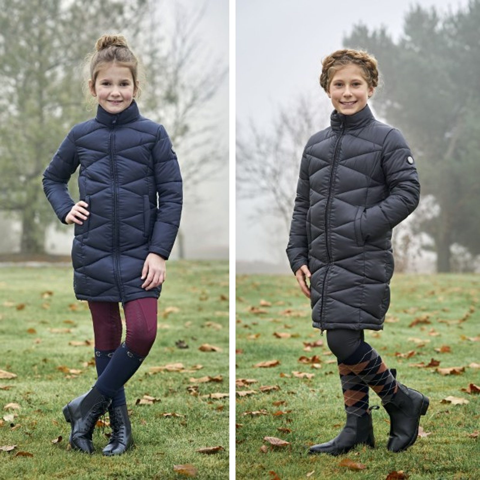 Dětský jezdecký prošívaný kabát pro chladné dny, Luxusní provedení za velmi dobrou cenu. Dostatečně zateplený i do mrazu, voděodolný a prodyšný. Kabát má pěkný projmutý střih a velice hezky sedí. Nechybí ani dva vysoké zadní rozparky na zip, které jsou podšité, což je skvělé pro udržení tepla a vaši ochranu před vlhkem a větrem. Vysoký límec s vnitřní měkkou hřejivou vrstvou a měkké náplety na rukávech. Dvě boční kapsy na zip zateplené fleecem. Na vnitřní straně kabátu jsou elastické popruhy pro připevnění ke stehnu - aby se přední díly kabátu při jízdě nezvedaly. Voděodolnost až do 5000 mm vodního sloupce, prodyšnost 2000 g/m2/24 h. Barvy: tmavě modrá a graphit. Velikosti: 128/134, 140/146, 152/158, 164/170.