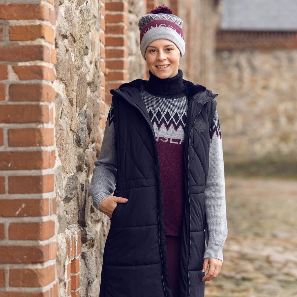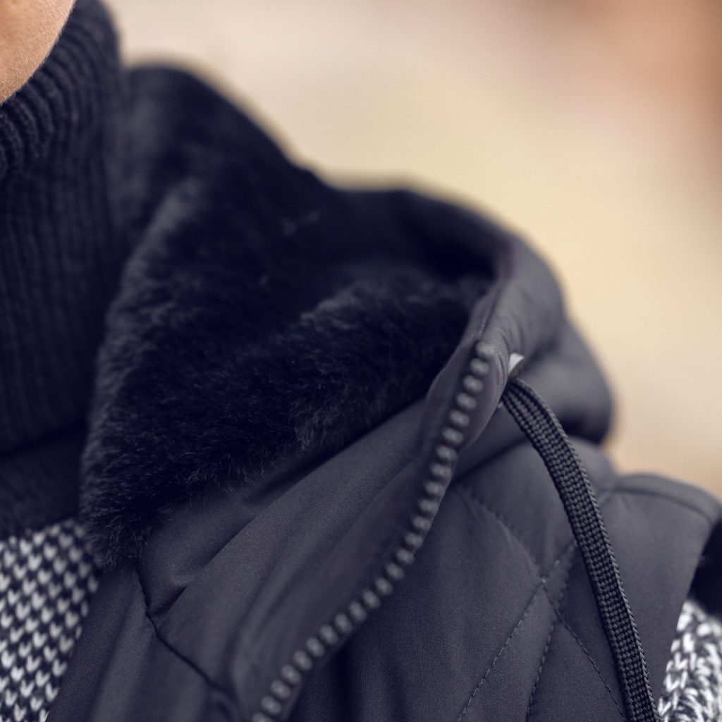 Uvnitř kabátu se nachází měkký kožíšek, který skvěle izoluje a udržuje střed těla v teple. Praktické odepínací rukávy umožňují variabilní nošení podle počasí, zatímco velký jezdecký rozparek na zip poskytuje volnost pohybu při jízdě. Spojení moderního designu a funkčnosti dělá z tohoto modelu perfektní volbu pro jezdkyně, které chtějí vypadat elegantně a zároveň se cítit pohodlně.