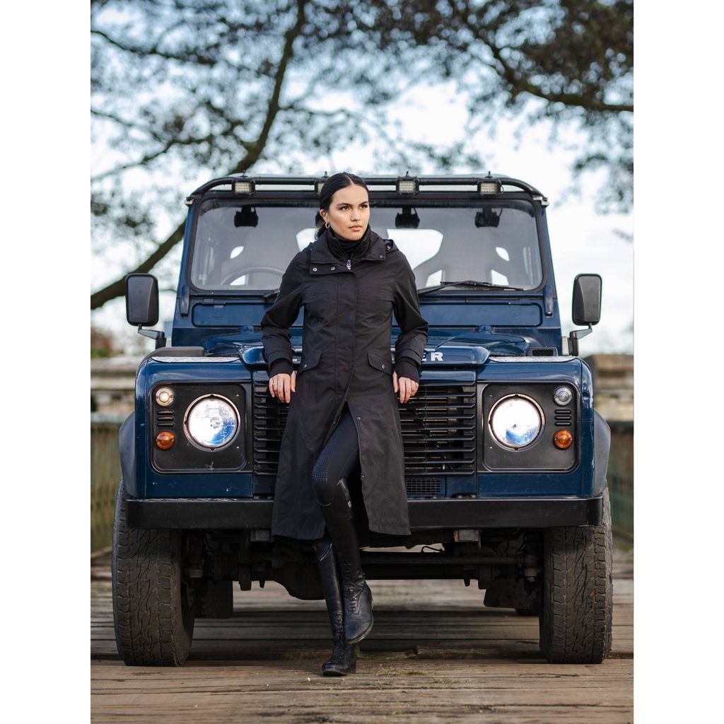 Pro lepší viditelnost a vaši bezpečnost za šera má kabát podložený zadní jezdecký rozparek na zip reflexní tkaninou. Kabát je dostatečně dlouhý, aby udržel v suchu i vaše nohy, uvnitř má poutka, která se zapínají kolem stehen pro jeho bezpečné uchycení.