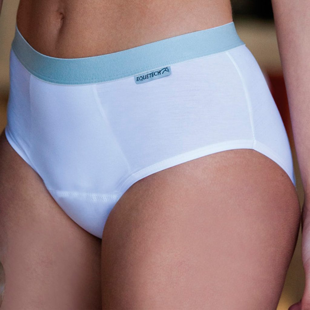Dámské, bavlněné jezdecké spodní kalhotky s příměsí lycry, speciálně polstrované na přední části a v oblasti sedla 3 mm specializovanou pěnou. Velmi pohodlné, prodyšné a dobře omezují otlačení. Velikosti: S, M a L. Barva: bílá.