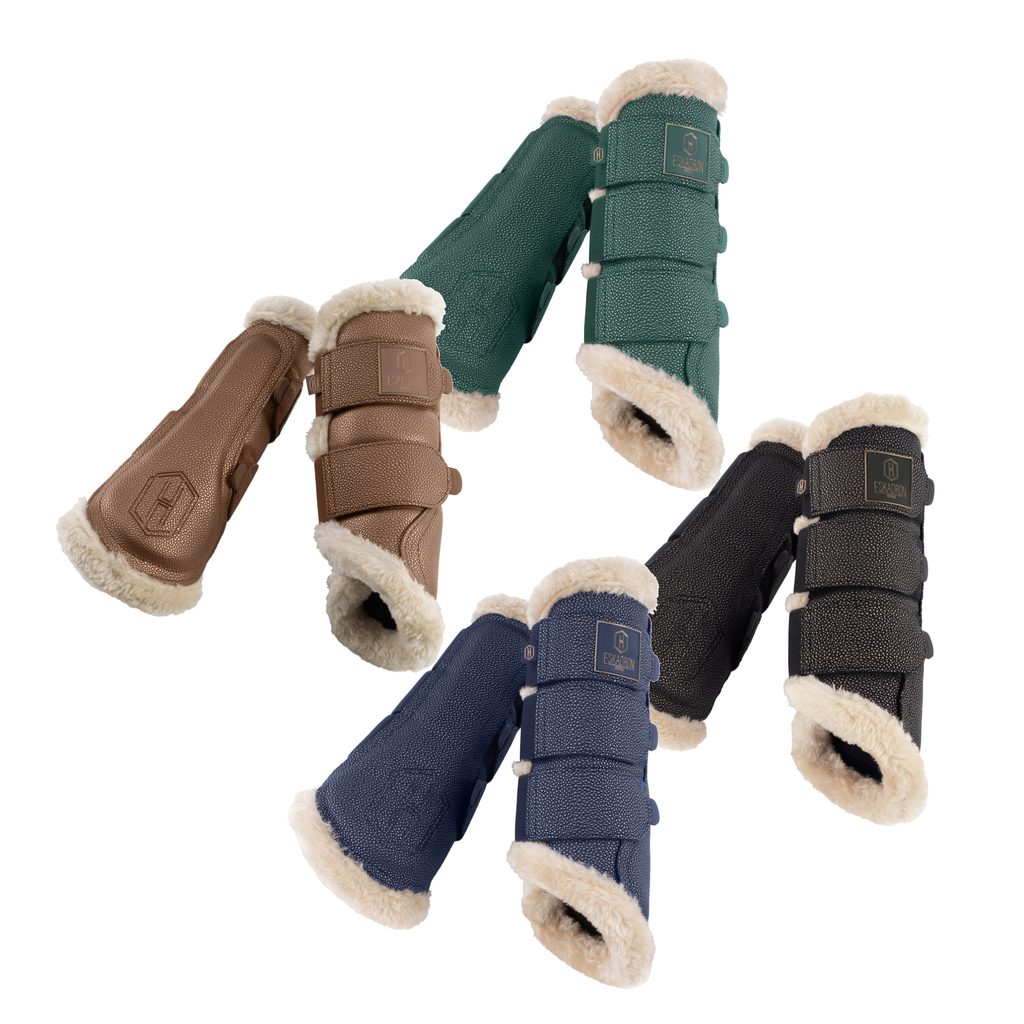 Kamaše poskytují spolehlivou ochranu nohám vašeho koně. Vyztužené části pomáhají předcházet zranění. Hustý umělý beránek je příjemně měkký a zvyšuje pocit komfortu. Suché zipy umožňují snadné nasazení a sundání, zároveň poskytují bezpečné a pevné uchycení. Zdobí je logo Eskadron.