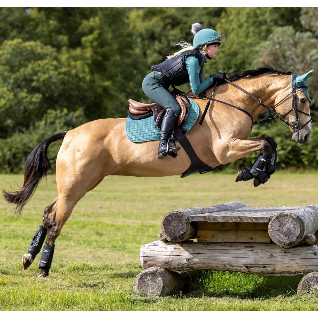 Pružný polykarbonátový chránič poskytuje vynikající ochranu. Vnitřní strana je z materiálu EVA s perforací. Skvěle přiléhá a je příjemně měkká. EVA je elastomerní polymer, ze kterého jsou vyrobeny velice pružné a měkké materiály. Zapínání je na tři pevné suché zipy, kdy prostřední pásek má elastickou vsadku pro dokonalé přizpůsobení.