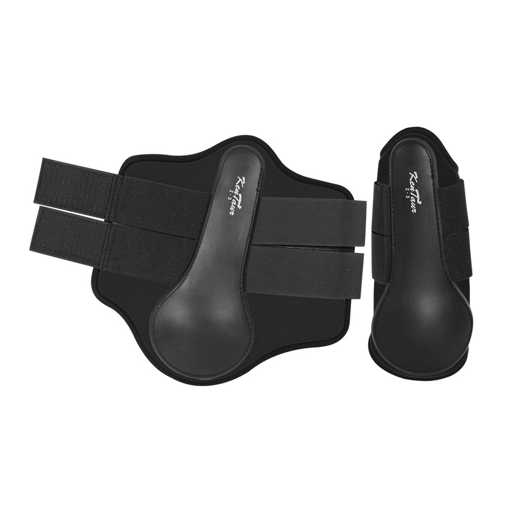 Neoprenové kamaše na zadní nohy s gumovým výliskem na vnitřní straně pro zvýšenou ochranu proti nárazu a mechanickému poškození. Zapínání na dva elastické suché zipy. Dodáváno v barvě černé ve velikostech pony, 2 a 3. Funkční a oblíbené kamaše za dobrou cenu.