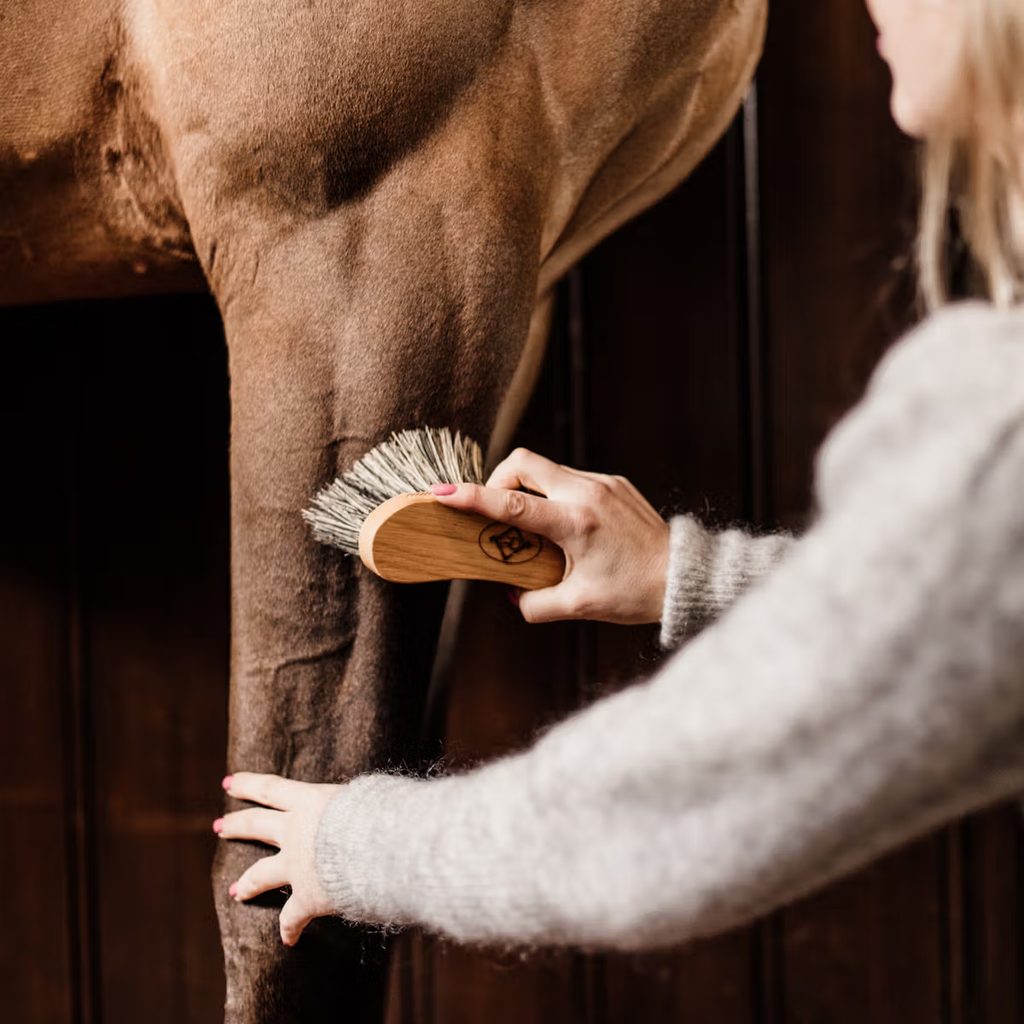 Robustní kartáč určený pro odstranění silných nečistot, zaschlého bláta a hrubých nečistot ze srsti koně. Díky tvrdým přírodním štětinám je ideální zejména při nepříznivém počasí, kdy je srst koně silně znečištěná.